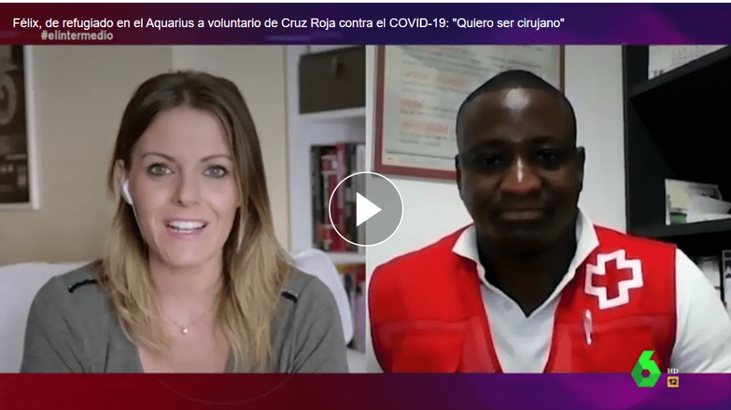 La Sexta I El Intermedio 16.06.2020 Félix, de refugiado en el Aquarius a voluntario de Cruz Roja contra la Covid-19: «Quiero ser cirujano»